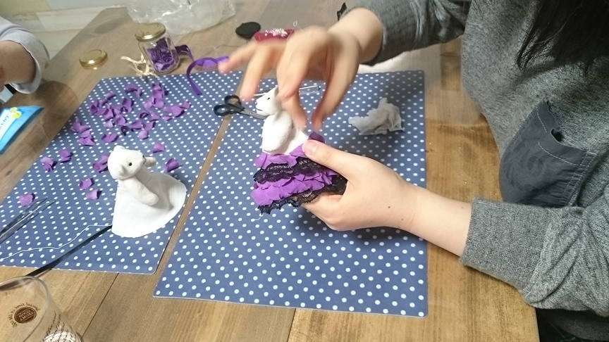 私がちょっと見ない間に、どんどん熊ちゃんのドレスが仕上がっていくんです![]()