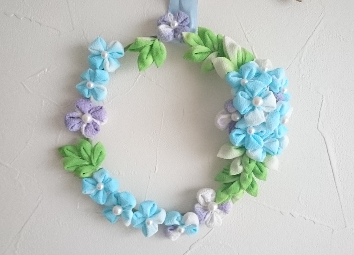 つまみ細工 あじさいリース
